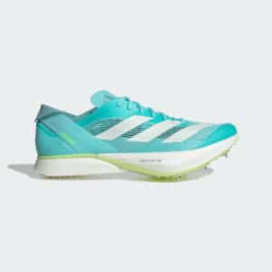 Destinée aux distances de 3 000 à 10 000 mètres, l’Adizero Avanti est conçue pour les athlètes confirmés. Elle repose sur une mousse Lightstrike Pro qui combine amorti léger et retour d’énergie, associée à une plaque rigide sur toute la longueur pour favoriser la propulsion. Sa semelle extérieure intègre un grip Sharkskin pour une accroche fiable, même à vive allure.