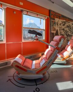 À bord, chaque wagon répond à un usage précis. Des compartiments équipés de kits produits permettent aux participants de s’équiper avant les sorties. Un wagon-café, inspiré des refuges alpins, sert de point de rencontre. Un espace laboratoire est dédié aux présentations techniques, aux ateliers et aux échanges autour du matériel. Le programme alterne randonnées et sessions trail guidées, temps d’analyse produit et discussions avec les équipes ACG. L’ensemble est conçu pour tester les équipements dans leur contexte réel, sans mise en scène superflue.