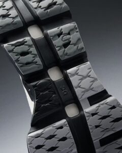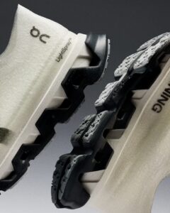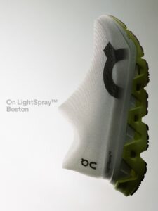 Cette approche réduit drastiquement le nombre de composants. La chaussure entière repose sur une architecture extrêmement simplifiée, avec un nombre d’éléments limité au strict nécessaire. Moins de pièces, moins d’assemblage, moins d’interventions humaines. Au-delà du gain de poids, c’est une refonte complète du process industriel qui est proposée ici. LightSpray ne sert pas uniquement à alléger une chaussure ; il redéfinit la manière de la fabriquer.