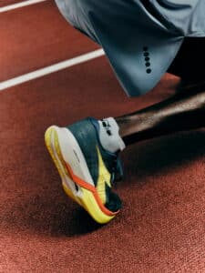 Au cœur de la chaussure, Diadora fait évoluer son composé ANIMA PBX, la mousse la plus performante de la marque en matière de retour d’énergie. La formule a été ajustée pour améliorer la réactivité tout en offrant une base plus stable lors de l’impact. La densité du matériau évolue afin de limiter la déformation de la mousse pendant la phase d’appui, ce qui permet de mieux contrôler la transition.