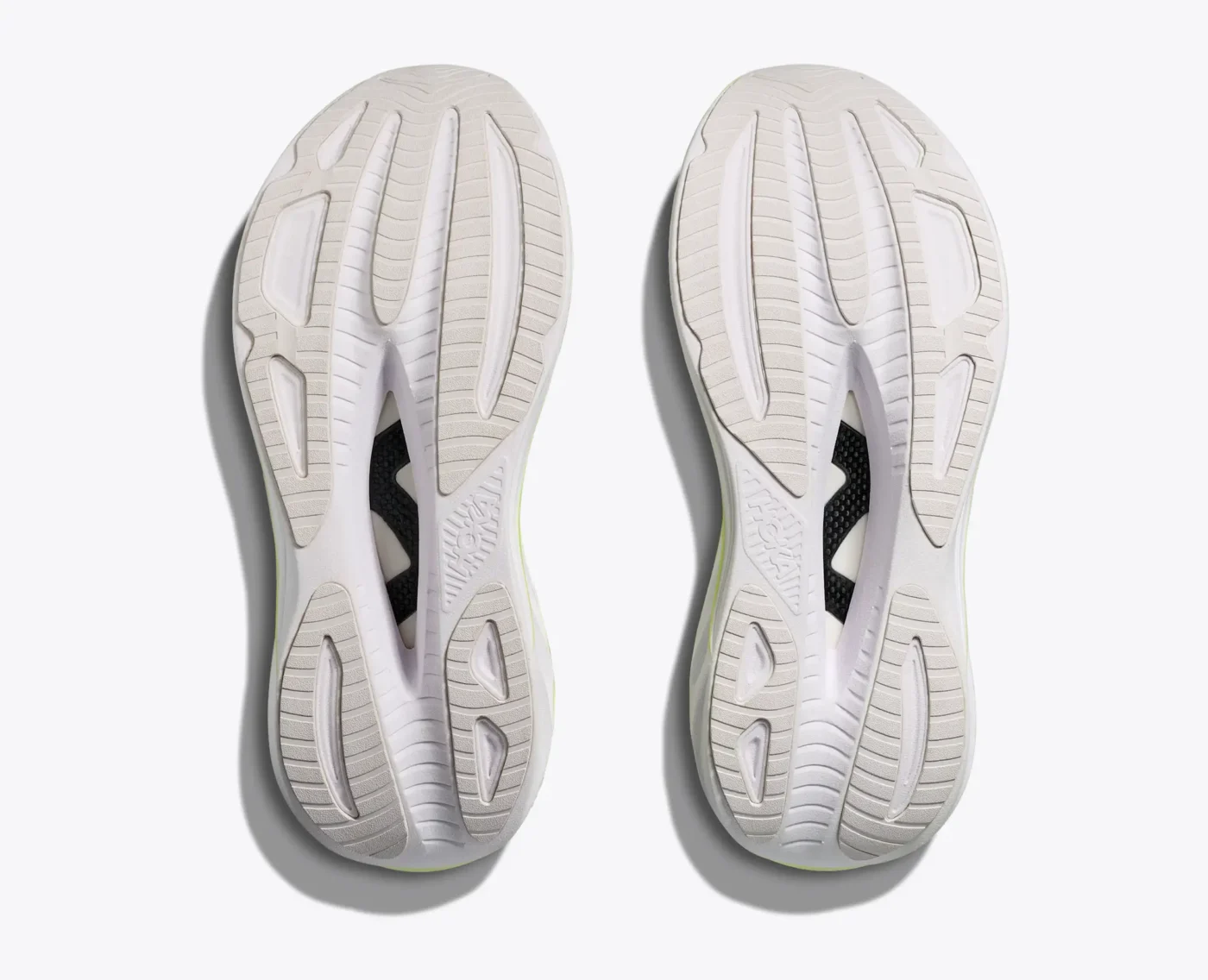 La semelle intermédiaire repose sur une architecture en double couche. Hoka associe une mousse PEBA, connue pour sa légèreté et sa capacité à restituer de l’énergie, à une mousse EVA supercritique. Cette combinaison vise à équilibrer dynamisme et stabilité, un point souvent difficile à atteindre sur des chaussures très amorties.